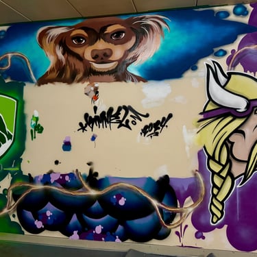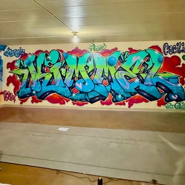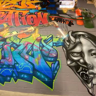 A gallery of custom murals painted with spray paint & latex paint, created at varying scales for public and private commissions